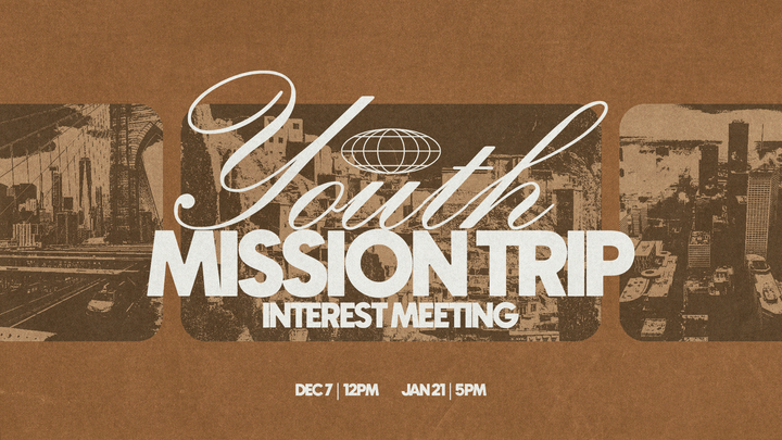 Parents and students are invited to join us as we share details about our upcoming mission trips to Houston, New York, and Albania! This will be a great opportunity to learn more about each trip, ask questions, and hear how God is opening doors for our students to serve and make an impact both locally and globally. Whether you’re curious or already planning to go, we’d love for you to come and discover how you can be part of what God is doing through our youth ministry this year.